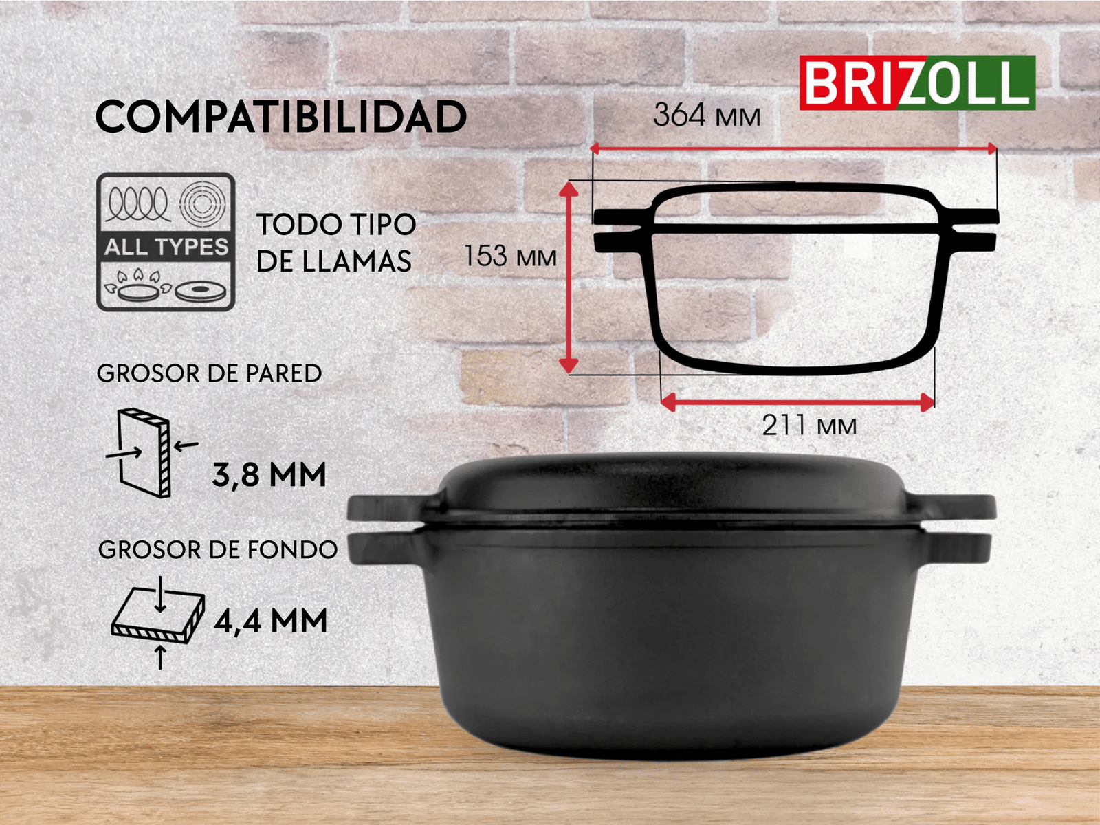 Cacerola de Hierro Fundido BRIZOLL – el clásico infaltable para guisos y cocciones lentas.