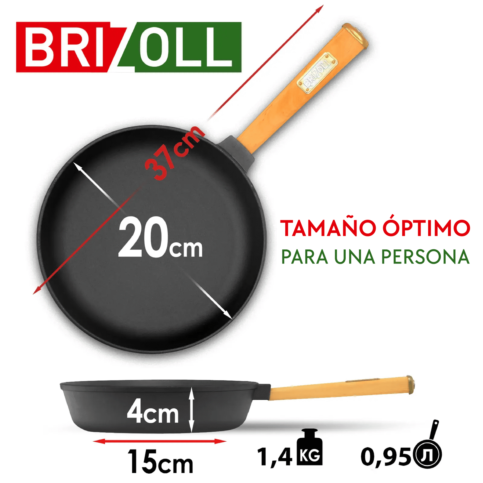 Sartén de hierro fundido 20 cm con MANGO MADERA!